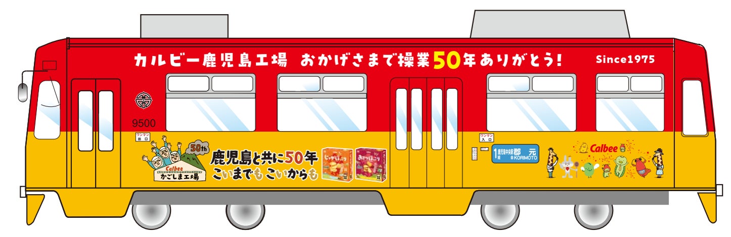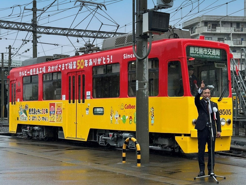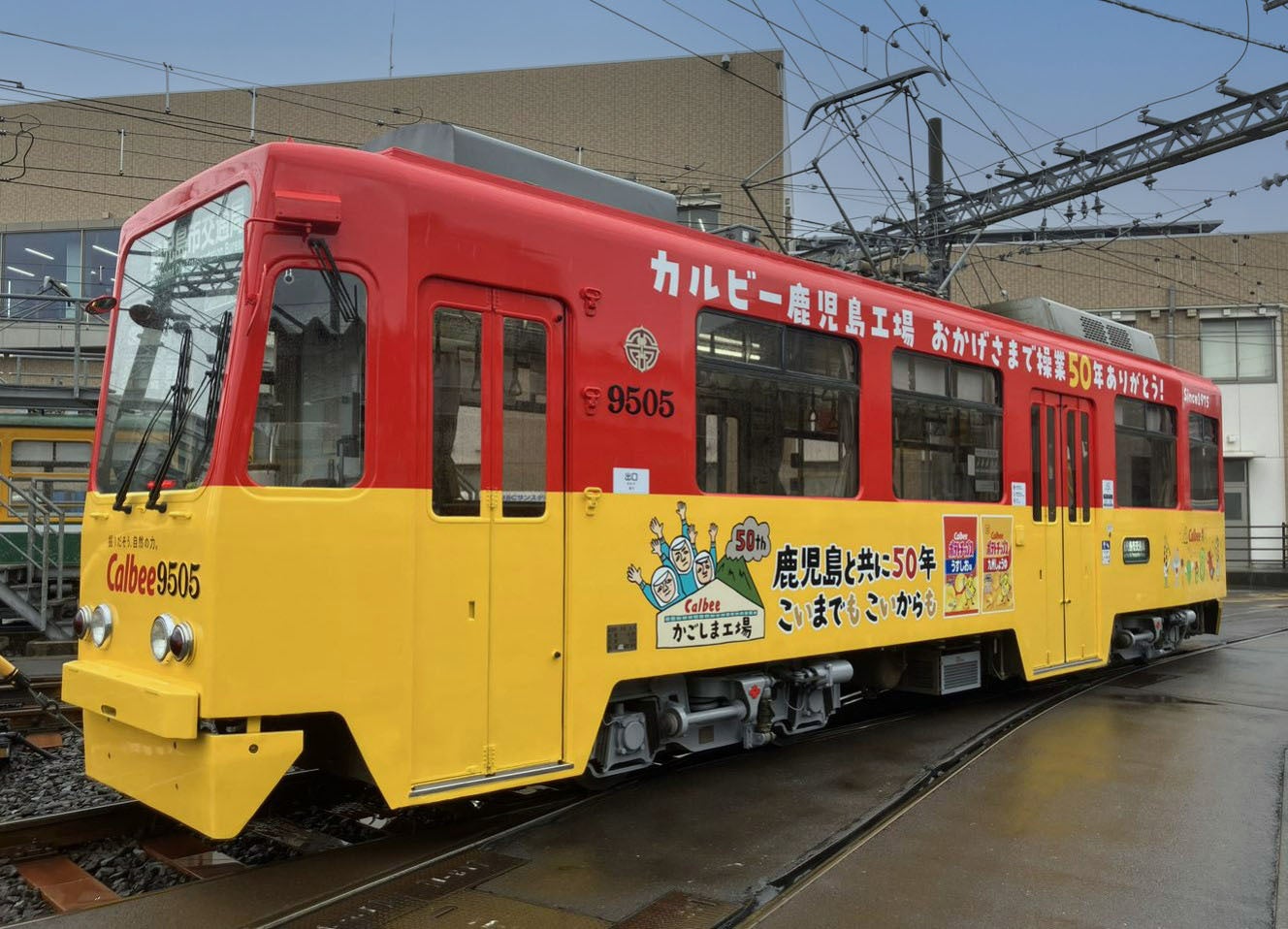 カルビー鹿児島工場操業50周年を記念して鹿児島市電でラッピング車両を運行開始!