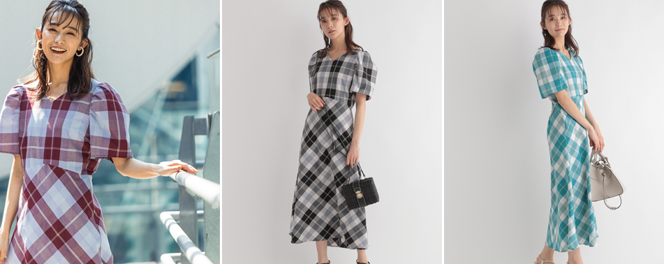 初夏を感じさせるカラフルで大判なチェックのオリジナル柄ワンピース。