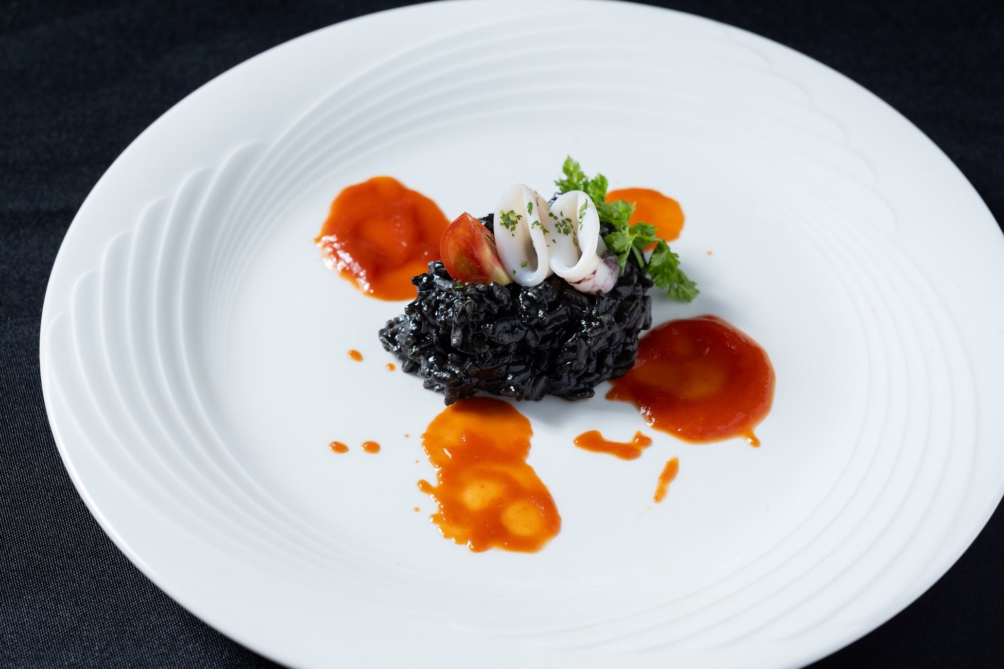 貝類の旨味を含ませイカ墨で仕上げた漆黒のリゾット。