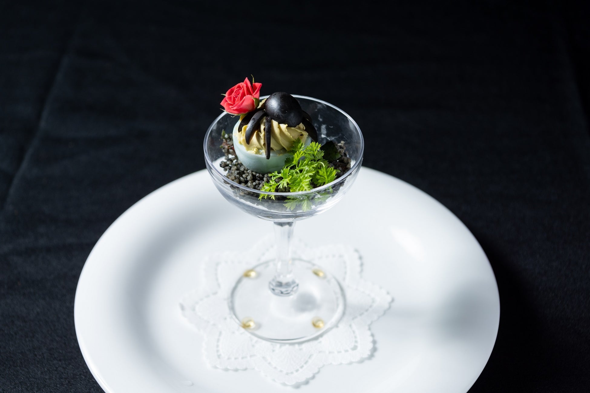 フランス料理をベースに作り上げた料理は、ヴィヴィッドな色合いを意識し、要所にハロウィンらしいモチーフをあしらって独自の世界観を演出。食材や調理法にもこだわり、味わい深い本格的なコースに仕立てました。ユニークな見た目からは想像できない、繊細な味わいをお楽しみいただけます。