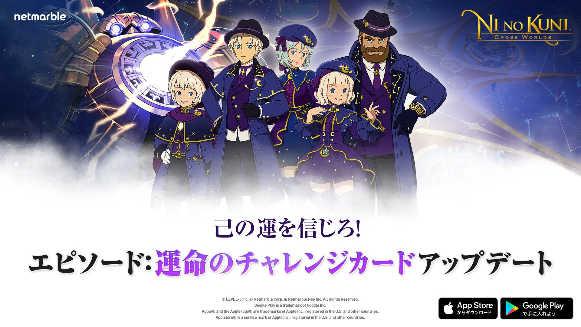 ネットマーブルは、レベルファイブとタッグを組みスマートフォン向けに開発したファンタジーアートRPG『二ノ国:Cross Worlds』(略称:ニノクロ)において、本日2月10日(木)に、新コンテンツとなるエピソード「運命のチャレンジカード」を追加するアップデートを実施いたしました。また、新コスチュームや新イマージェンなど、多くの新要素を追加したことも併せてお知らせいたします。