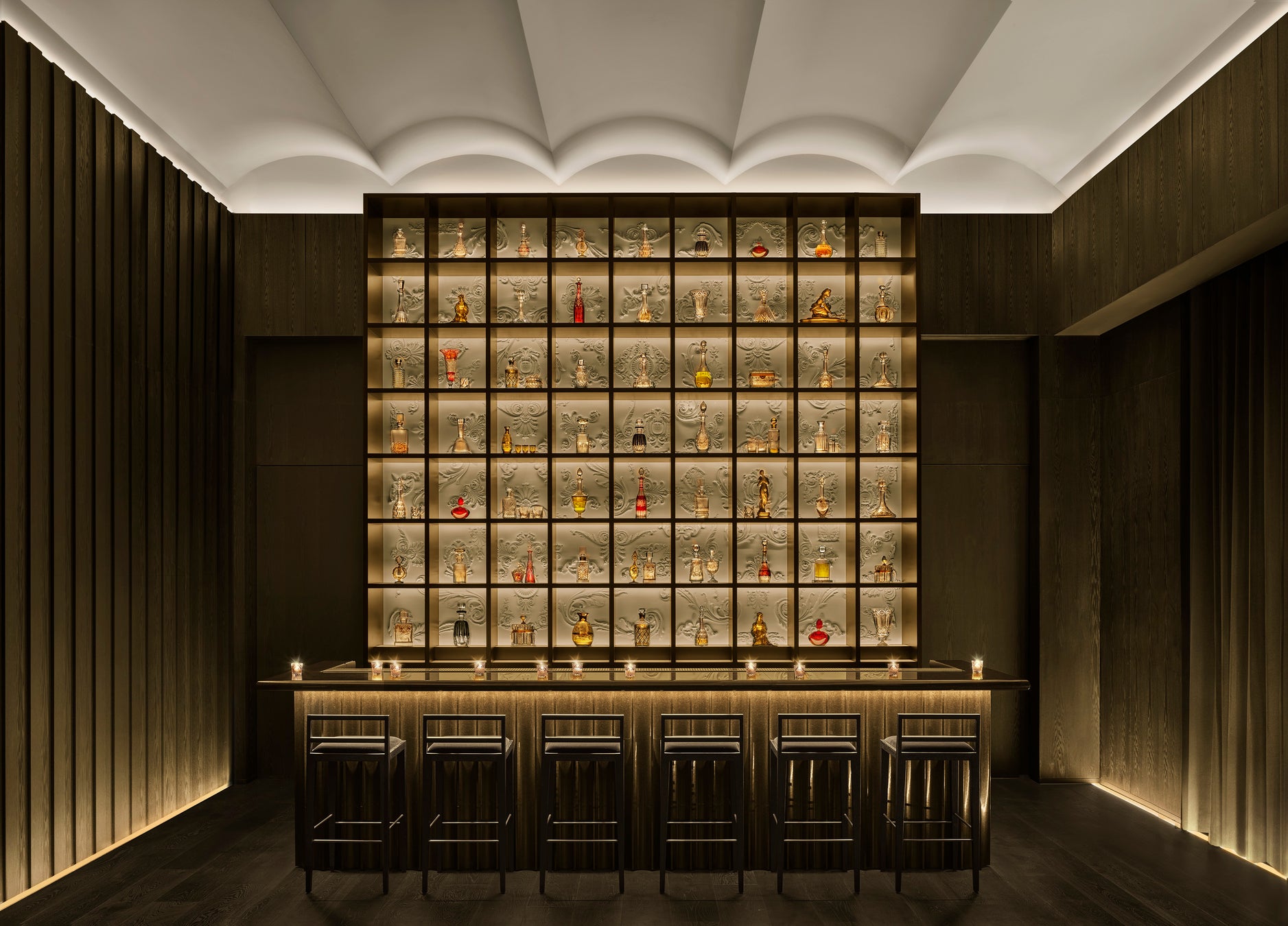 ゴールドのアクセント、黒大理石のバーカウンター、高さ5メートルの白いアーチ型バレルヴォルト天井がさらに空間を演出します。親しみやすいバーには、ネロマルキーナ大理石の暖炉が配され、その上にはアーティスト ゲラン・スウィングによる金箔の作品が飾られています。Gold Bar at EDITIONでは、平日はGray Vのミックスによるローテンポのクラシック、ジャズ、ソウル、R&B、金曜と土曜の夜にはDJがプレイします。