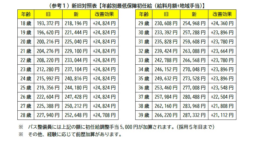 またバス乗務員【養成コース】(※1)の養成期間中の基本給についても、12.6%とさらに大幅なベースアップを実施しました。