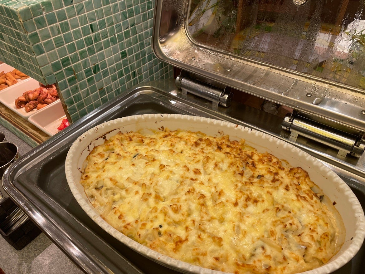 また、夕食時のバイキングではお子様に大人気のポテトやグラタンも提供しております。