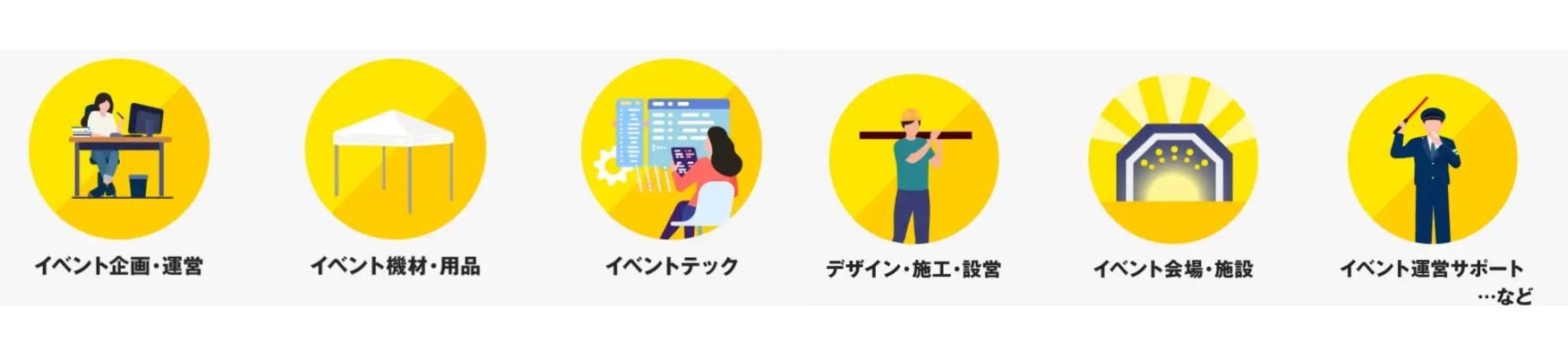 イベントの「企画・運営」「機材・用品」「会場・施設」「イベントテック」など、