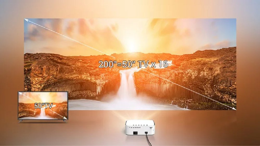 - 最大200インチ大画面、斜めからでも歪み補正で省スペース