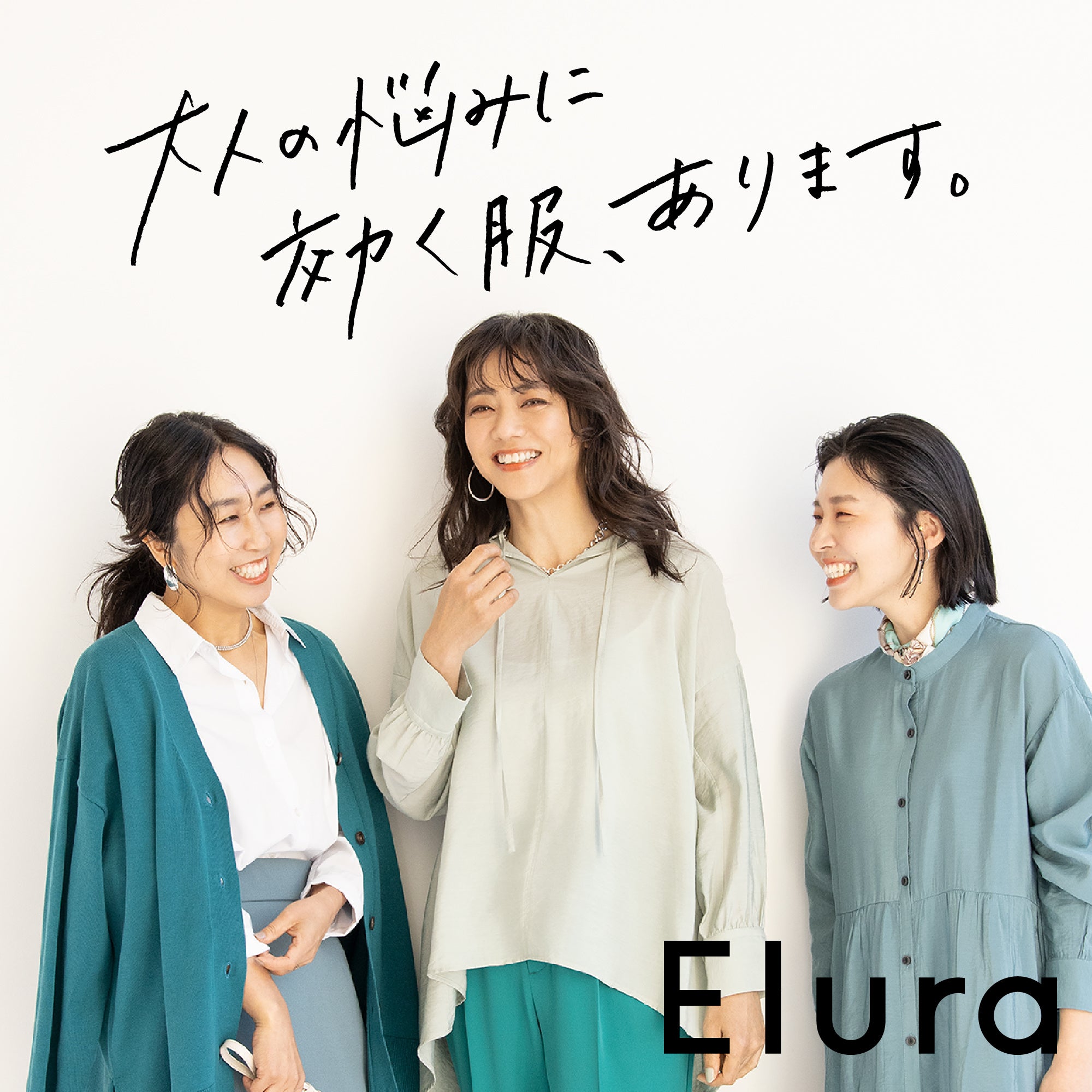 Eluraは「私が私を好きでいるために。いくつになっても、自分らしく、女性らしく」をコンセプトに、化粧品のように悩みに”効く”に、こだわってつくられた大人女性のためのブランドです。ブランド名は「A Rule」の逆読みに由来。「ルールではなく。私のルール。いくつになっても、自分らしく、女性らしく。」という意味を込めて名付けました。単独店15店舗を展開し(2022年4月時点)、40代~50代の女性をターゲットとしています。