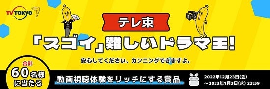 また、”年末年始はテレ東配信がスゴイ”と称して2つのキャンペーンを実施します。豪華プレゼントも用意していますのでぜひご参加ください。(詳細は下記)