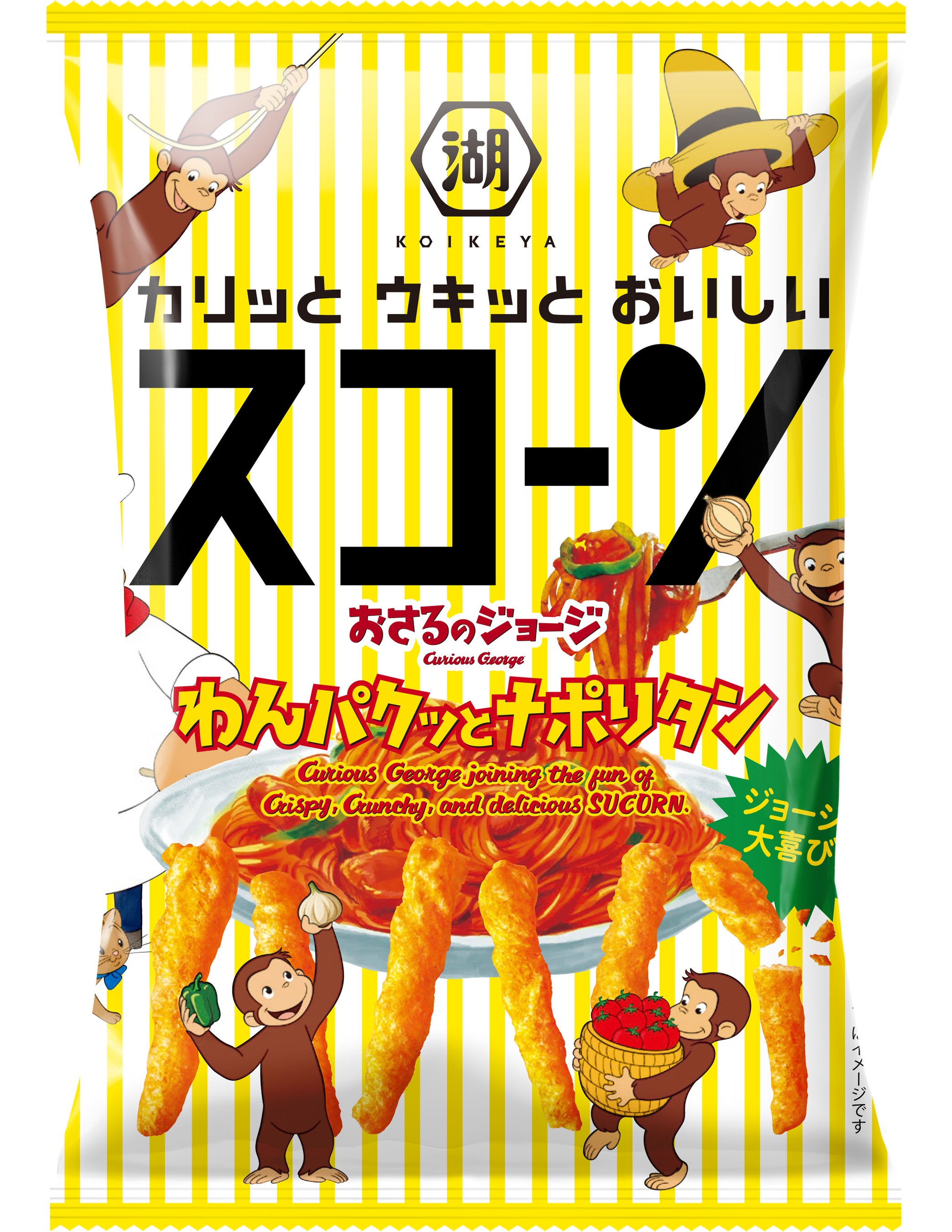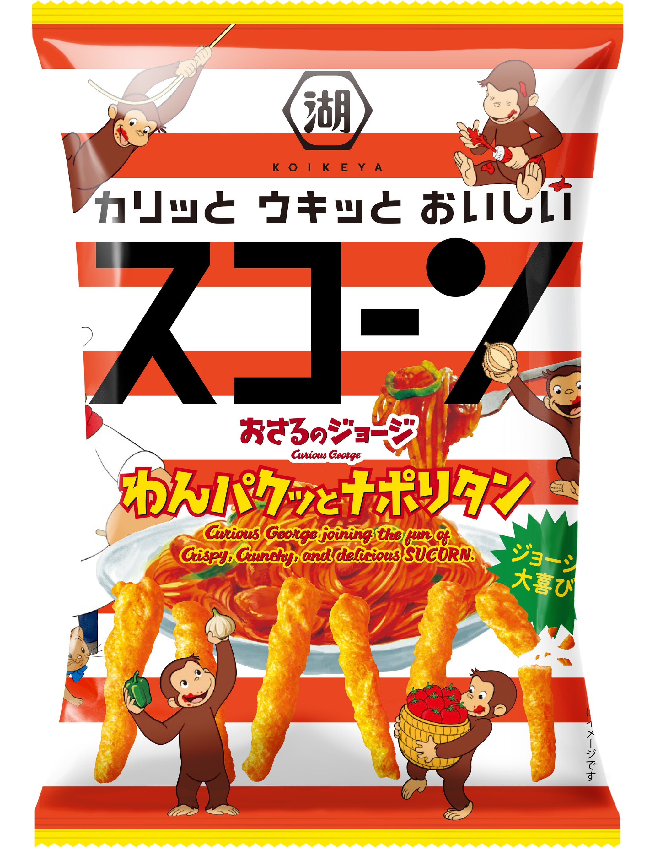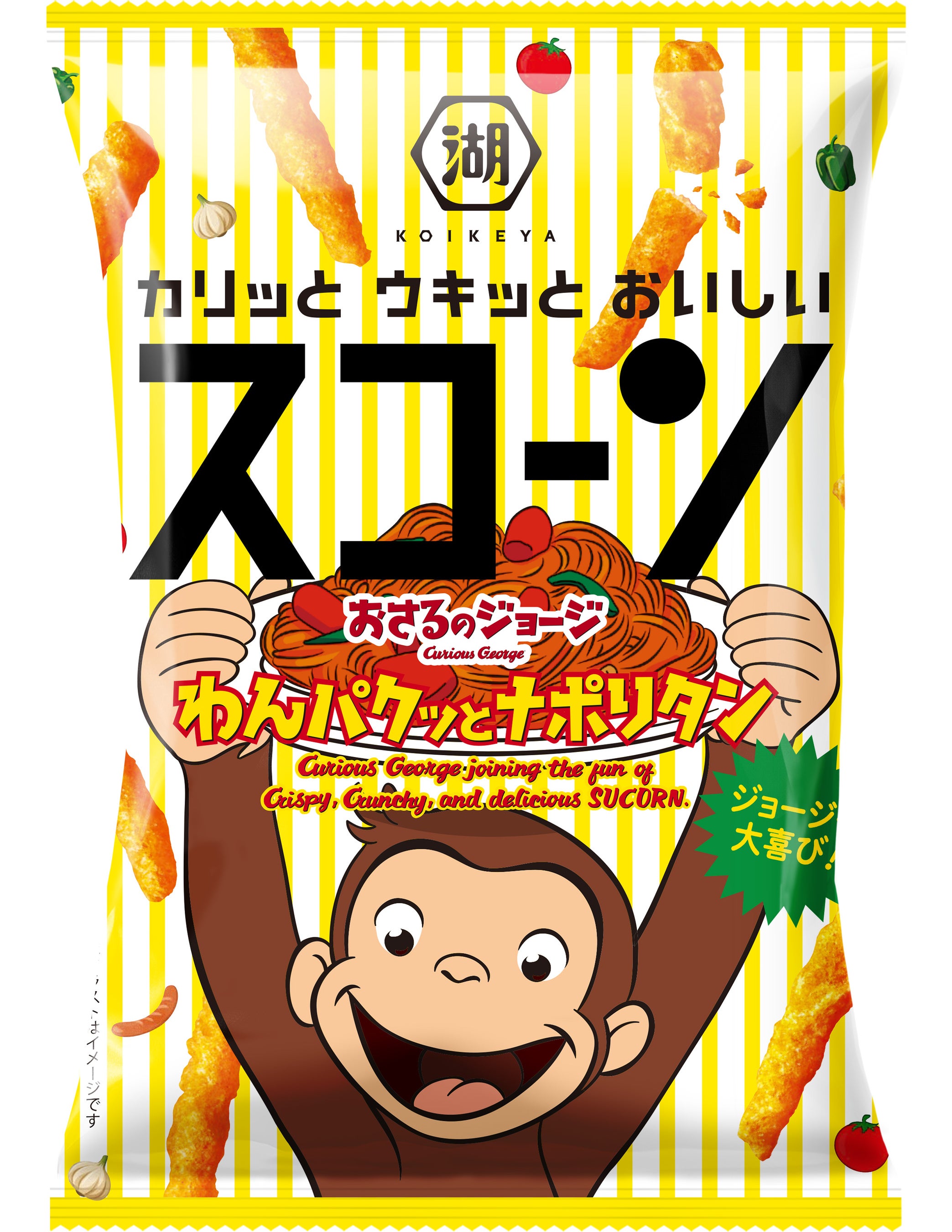 湖池屋スコーンに「おさるのジョージ」がやってきた!ジョージも大喜びの“ナポリタン”の味わい 「スコーン わんパクッとナポリタン」新発売 “ジャンボジョージぬいぐるみ”が当たるキャンペーンも実施!