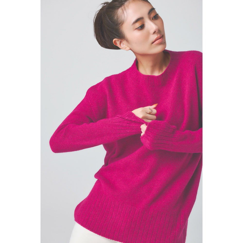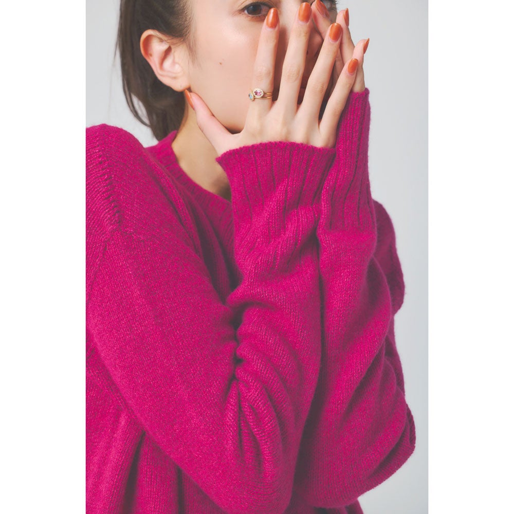 シームレスで編み上げた、ゆったりとしたシルエットのクルーネックのプルオーバー。ニュアンスのあるメランジピンクとメランジブルーの2色をご用意しました。大人っぽいニュアンスのカラーとカシミヤ混素材ならではの心地よさです。