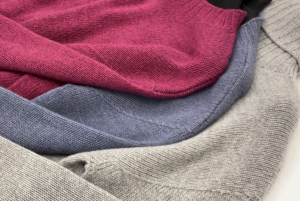 リサイクルカシミヤに加え高クオリティのカシミヤの原毛をミックスして紡績します。カシミヤの原毛を加えるのは製品になった時のクオリティへのこだわりのため。着心地の良さと肌触りの良さへのこだわりが垣間見えます。
