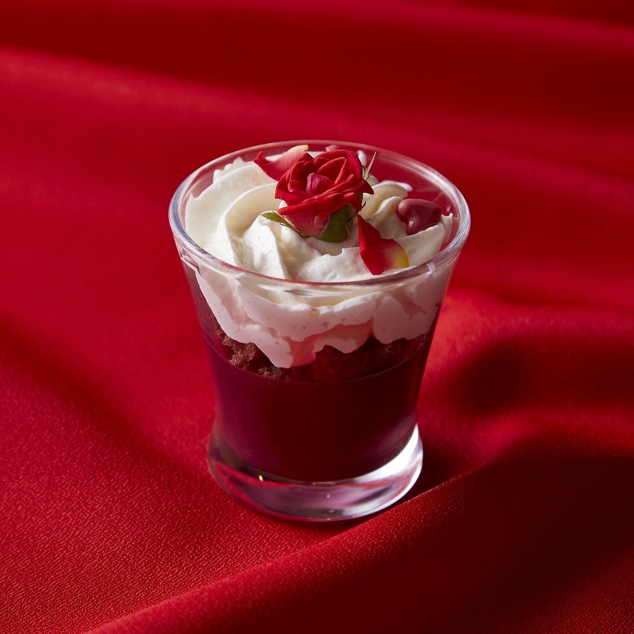 ハートの女王の庭園で大切に育てられた赤いバラが咲き誇る優美なスイーツです。