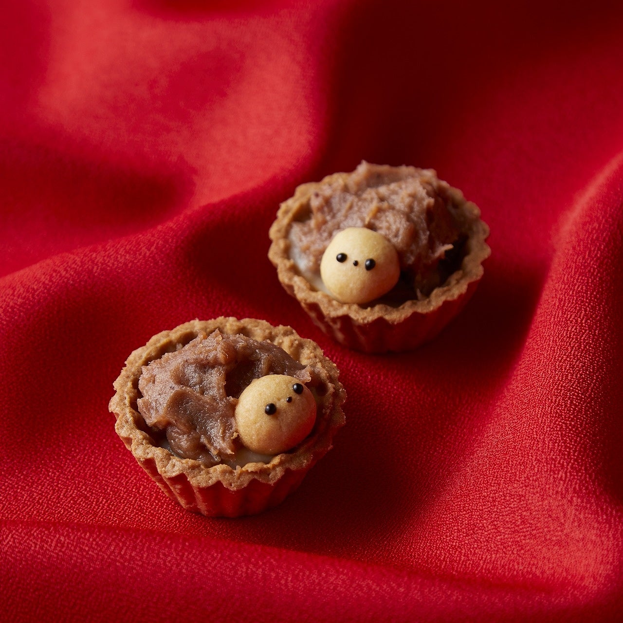 モンブランクリームとチーズクリームがふんわりと入った、ハリネズミがモチーフのこのタルトは、クロッケーの試合で転がる愛らしいハリネズミそのものです。