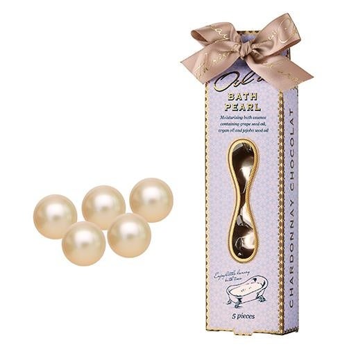 まるで大粒パールのような見た目の入浴料。シャルドネとビターショコラの香りを楽しめます。