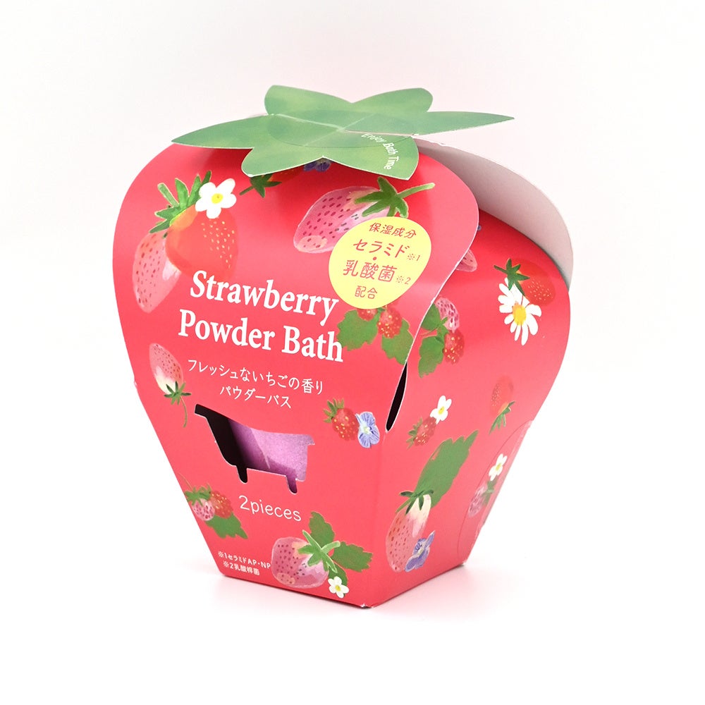保湿成分セラミドを配合し、お肌がしっとりうるおうパウダーバス。苺を模したパッケージでギフトにもおすすめ。