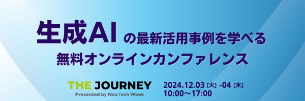 RX Japan株式会社(本社:東京都中央区、代表取締役社長:田中 岳志)は2024年12月3日[火]~4日[水]の2日間、オンラインカンファレンス『THE JOURNEY Presented by NexTech Week』を開催します。