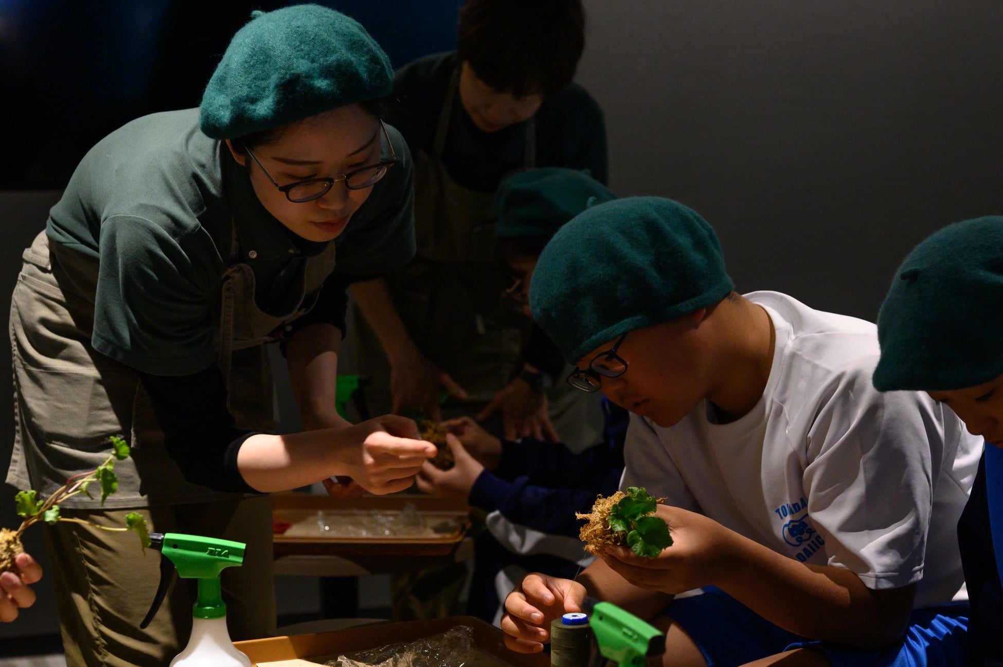 奥入瀬渓流ホテルが提供する体験プログラム「こけ玉作り体験」に、生徒たちが取り組みました。講師は、苔の魅力を伝える「奥入瀬モスボール工房」のスタッフが務めます。この体験は、奥入瀬渓流に点在する苔むした岩をイメージし、小さな奥入瀬渓流をこけ玉で表現する内容です。生徒たちは、事前に参加した「苔さんぽ」で観察した苔の生態や、苔の上に根づく木々の様子を思い出しながら、それぞれの感性で制作に集中。手を動かしながら自然に触れるこの体験を通して、苔という存在への関心や親しみを一層深め、身近な自然を見つめ直すきっかけとなりました。