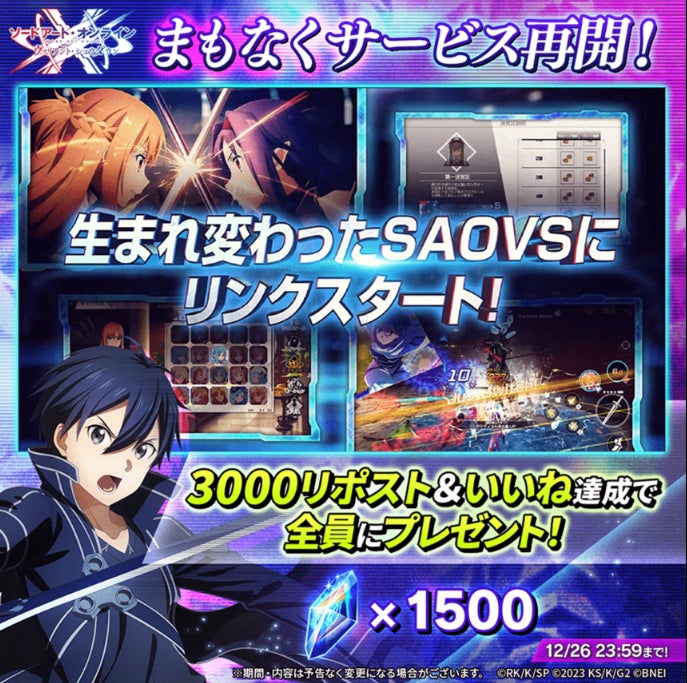 キャンペーン詳細はこちら:https://x.com/saovs_gameinfo/status/1867049235650318699