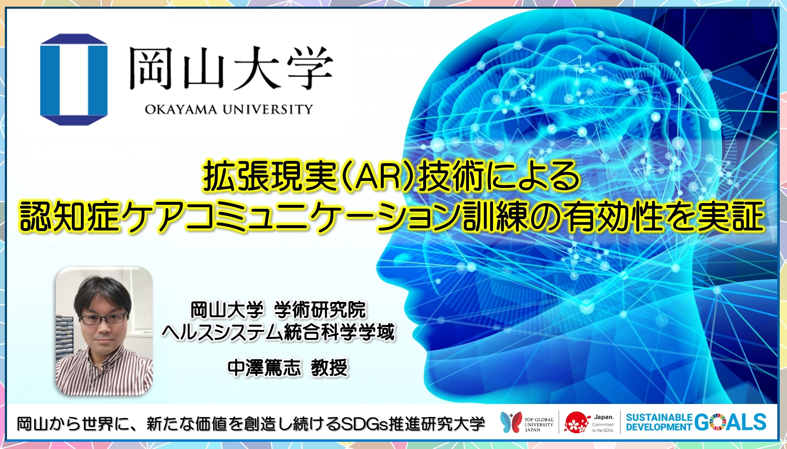 国立大学法人岡山大学(本部:岡山市北区、学長:那須保友)学術研究院ヘルスシステム統合科学学域の中澤篤志教授らの研究グループは、拡張現実技術(Augmented Reality(AR))を用いた認知症ケアコミュニケーション訓練の有効性を実証しました。