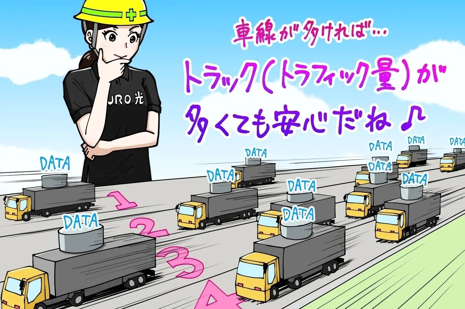 「NURO」の速さの仕組みを道路に例えて説明し、子どもたちも納得の表情。