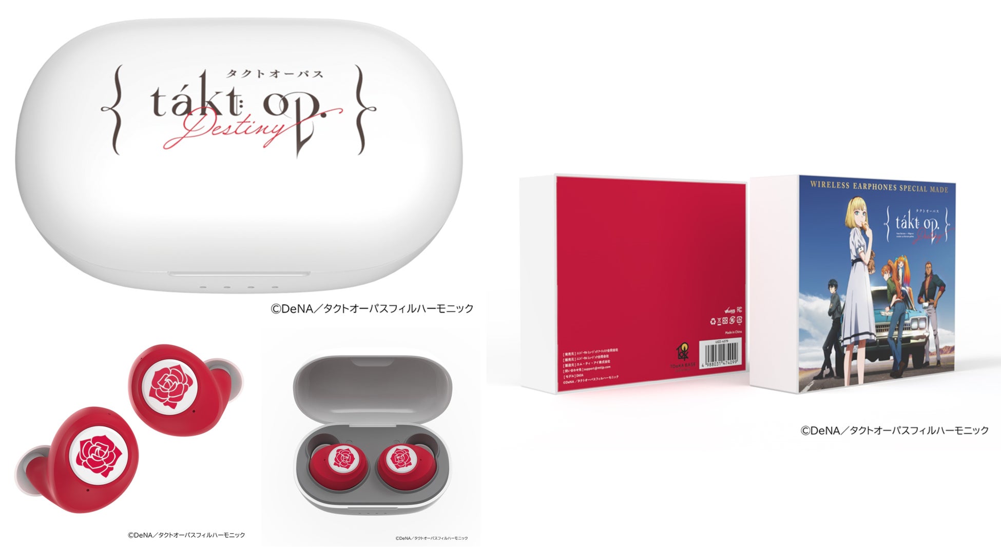 ユニバーサル ミュージック合同会社(本社:東京都渋谷区、 社長兼最高経営責任者(CEO):藤倉尚 / 以下、 ユニバーサル ミュージック)は、音楽ライフスタイル商品を届けるライフスタイルブランド「TOoKA BASE」から完全ワイヤレスイヤホンのTVアニメ『takt op.Destiny』『薔薇王の葬列』コラボレーションモデルを10月に発売します。