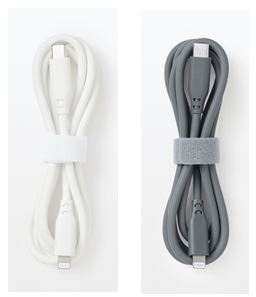 また、「やわらかくて絡まりにくいUSBケーブル」」は、ケーブルをやわらかいシリコーンでコーティングし、絡まりにくく断線しにくい仕様にしました。高速データ転送が可能で、各種コネクタに対応できる品揃えです。デスクまわりやデバイスに馴染むよう、白とグレーの2色展開です。