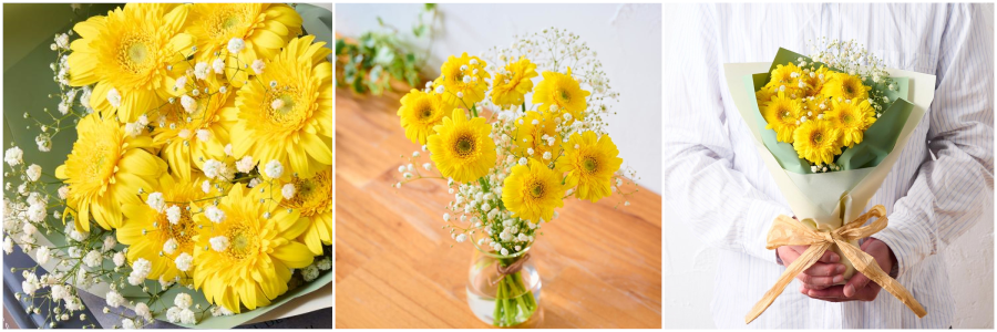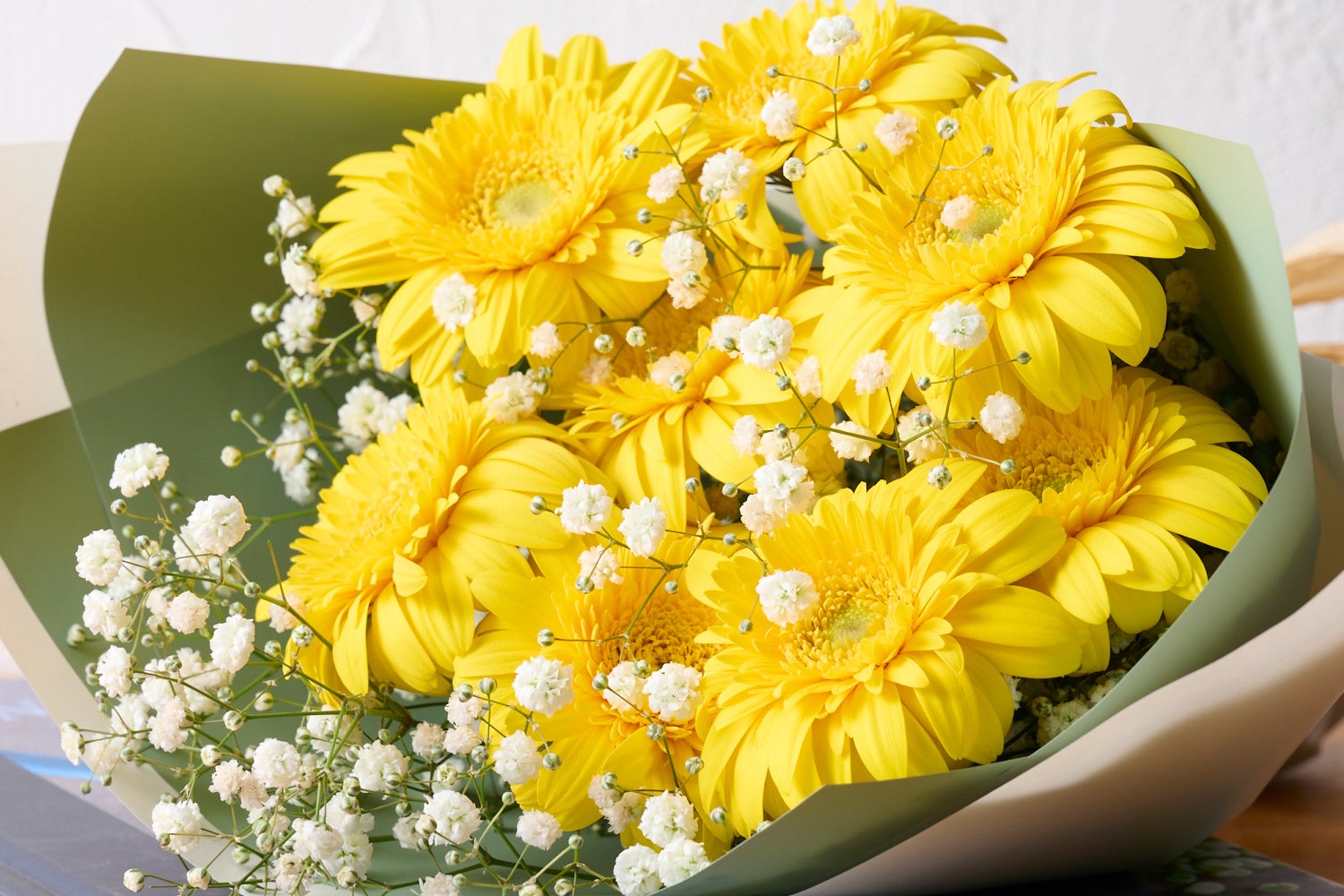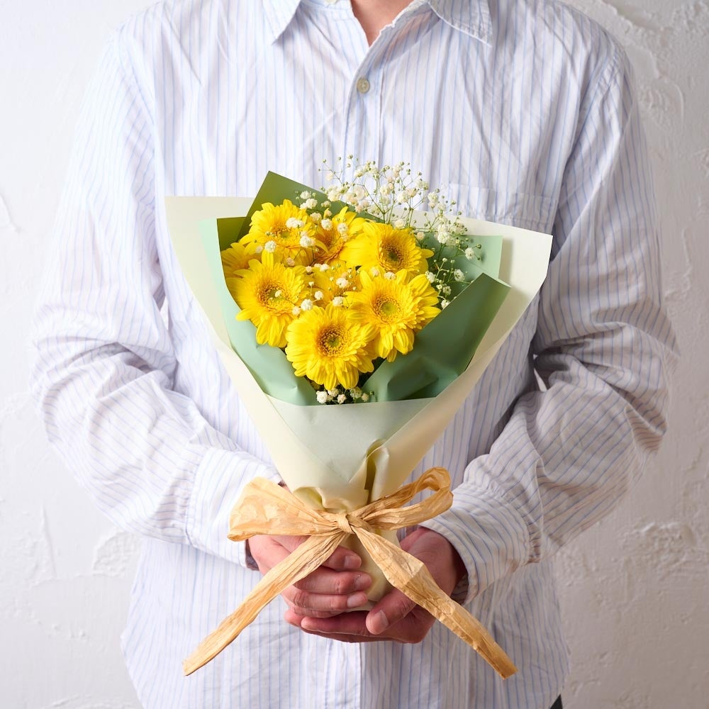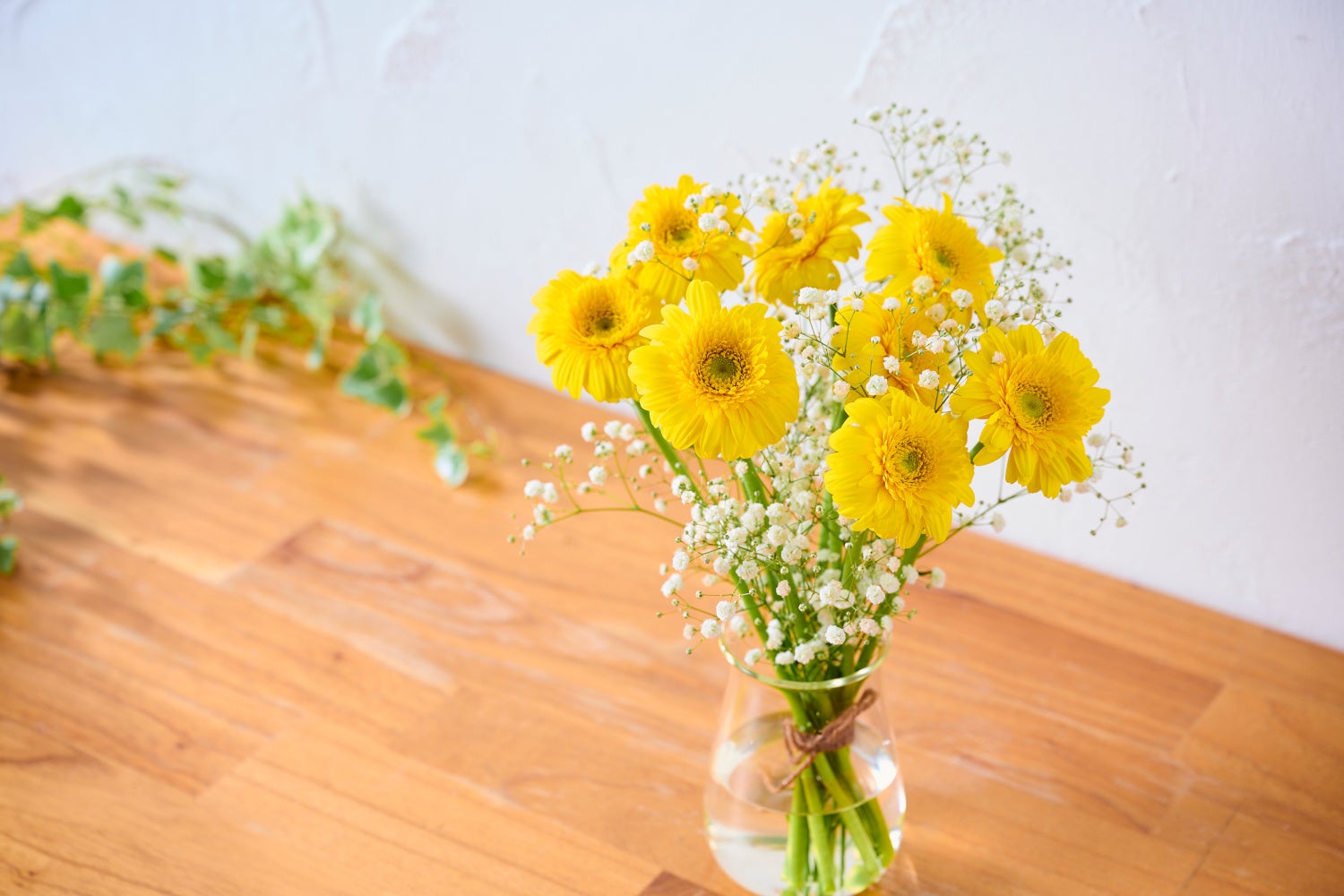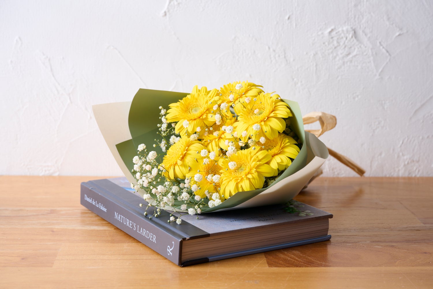 黄色いガーベラは、花言葉のひとつに「友情」という説があり、大切な友人や仲間への贈り物としてもおすすめです。