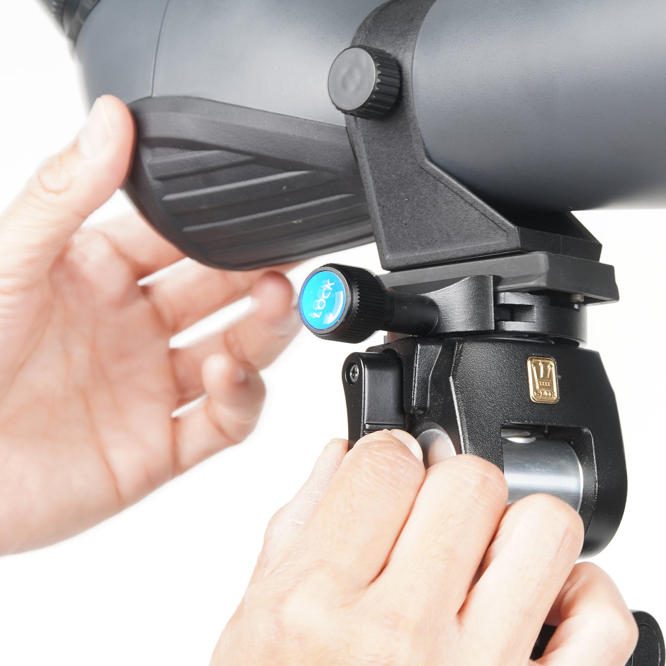 1ハンドルで上下・左右の動きが自在に調整でき、野鳥の動きをしっかりとらえられる「SH-707ACフリーターン雲台」を装備。長年バードウォッチャーに人気の高い雲台です。