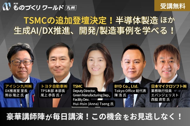 【TSMCの追加登壇決定!】TSMCの半導体製造を学べる ほか、トヨタ自動車/アイシン九州/日本マイクロソフト/BYD などが登壇、製造業の最新トレンドを学べる無料セミナー @マリンメッセ福岡