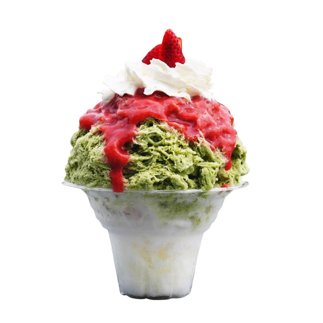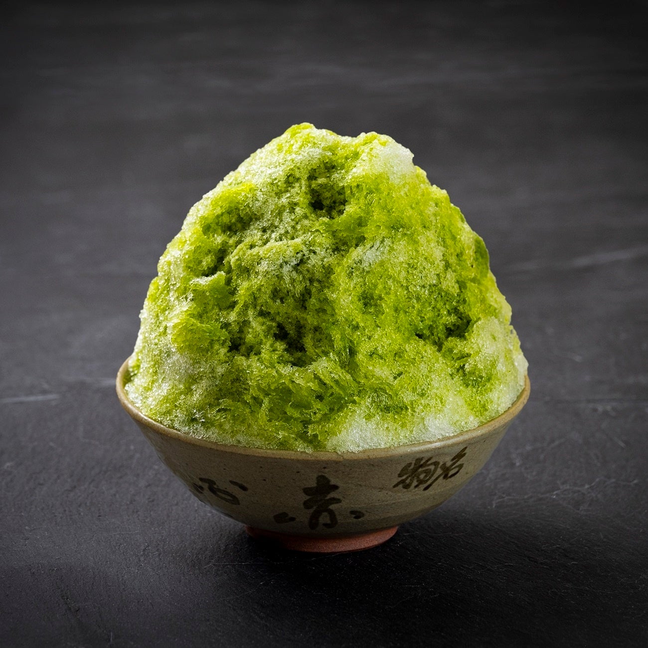 抹茶蜜のかかったかき氷の中に、氷になじむ特製のあんとお餅が入っています。〈通期・イートイン〉