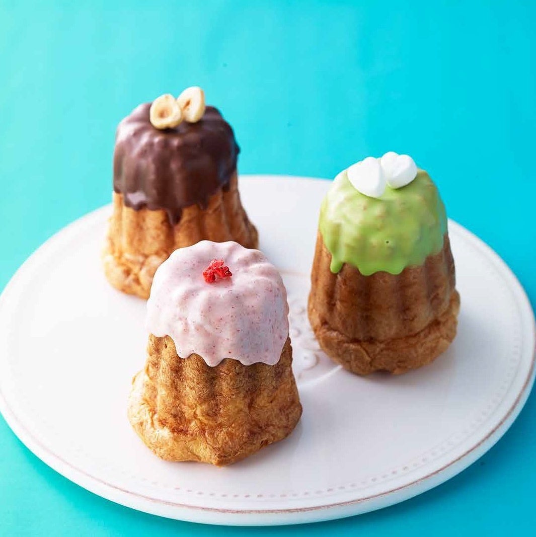 カヌレ型でシュー生地を焼き上げる「シューカヌレ」。クリームやフルーツで彩もかわいく。〈通期〉
