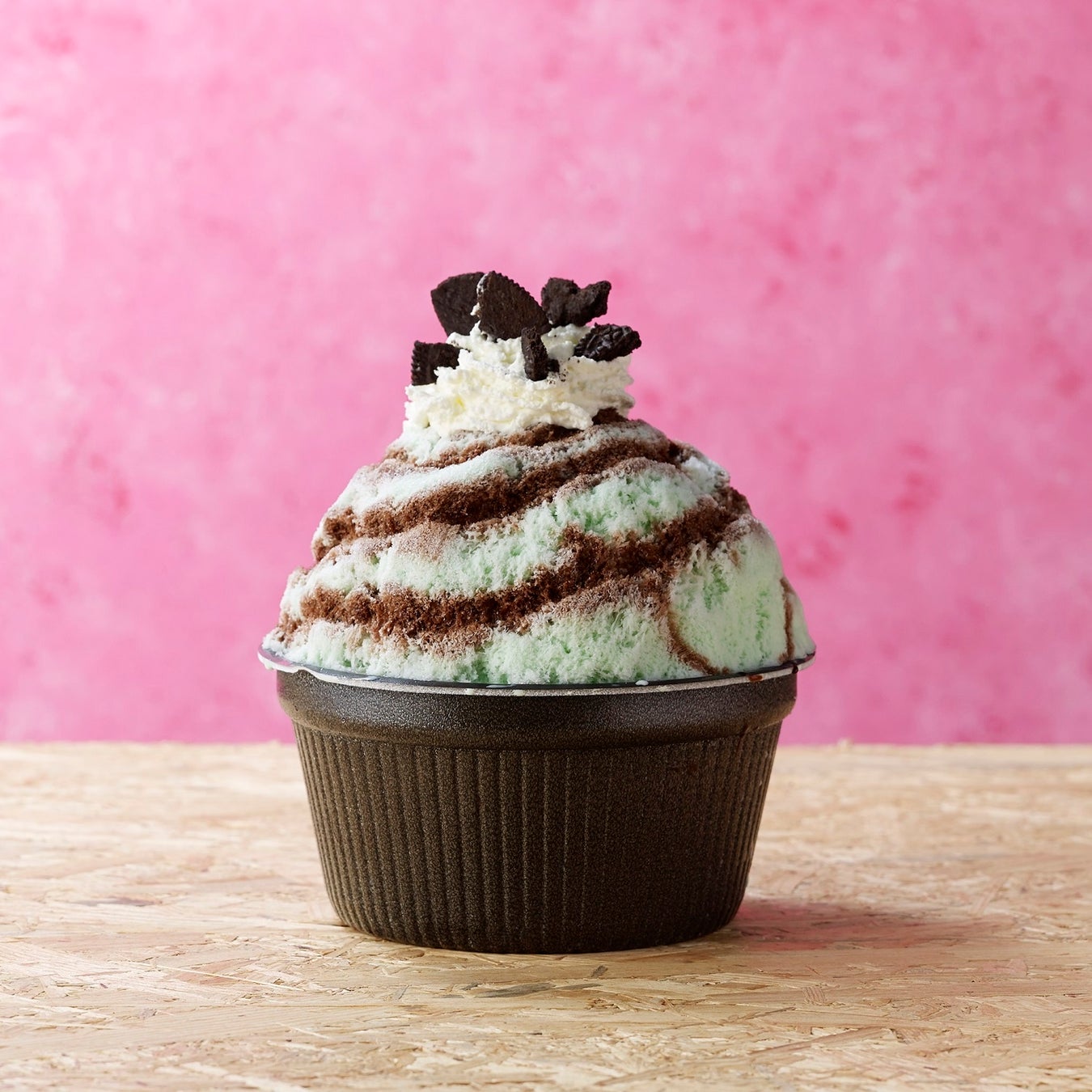 ミントクリームを詰めたボリューミーなドーナツに、チョコミントソースやクッキーを飾って。〈前半・実演〉