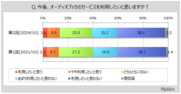 マイボイスコム株式会社(東京都千代田区、代表取締役社長:高井和久)は、2回目となる『オーディオブック』に関するインターネット調査を2024年10月1日~7日に実施しました。
