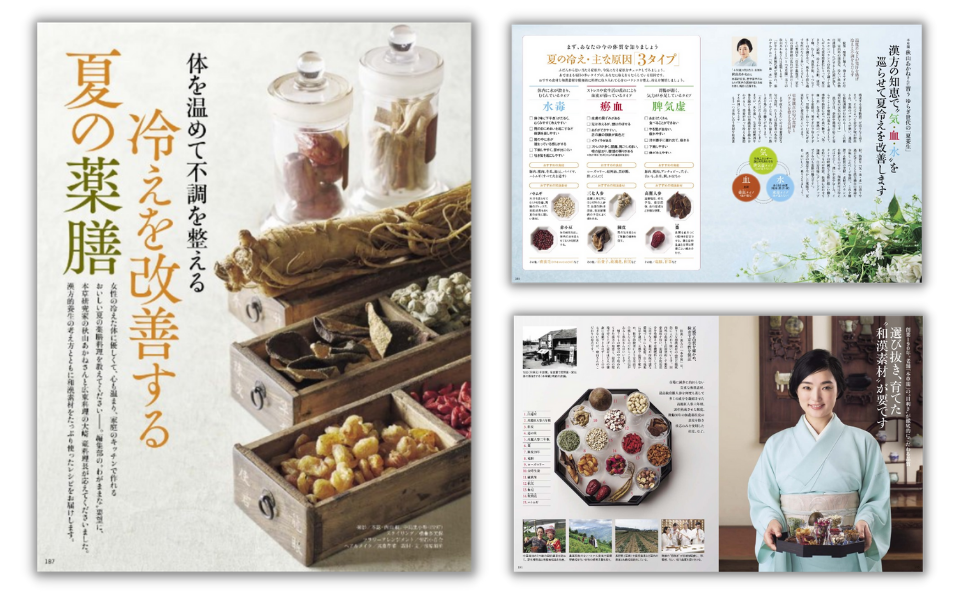 女性の冷えた体に優しくて、心も温まり、家庭のキッチンで作れる、おいしい夏の薬膳料理を教えてください ──。編集部の“わがままな”要望に、本草研究家の秋山あかねさんと広東料理の大崎 竜料理長が応えてくださいました。漢方的養生の考え方とともに和漢素材をたっぷり使ったレシピをお届けします。秋山さんが当主を務める「本草閣」と『家庭画報』オリジナルの和漢素材セットも企画し、特別販売します。