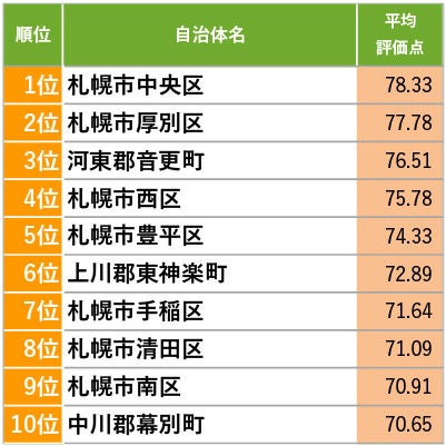 北海道版<自治体>では「札幌市中央区」が1位 札幌市版<駅>では「西線14条」が1位