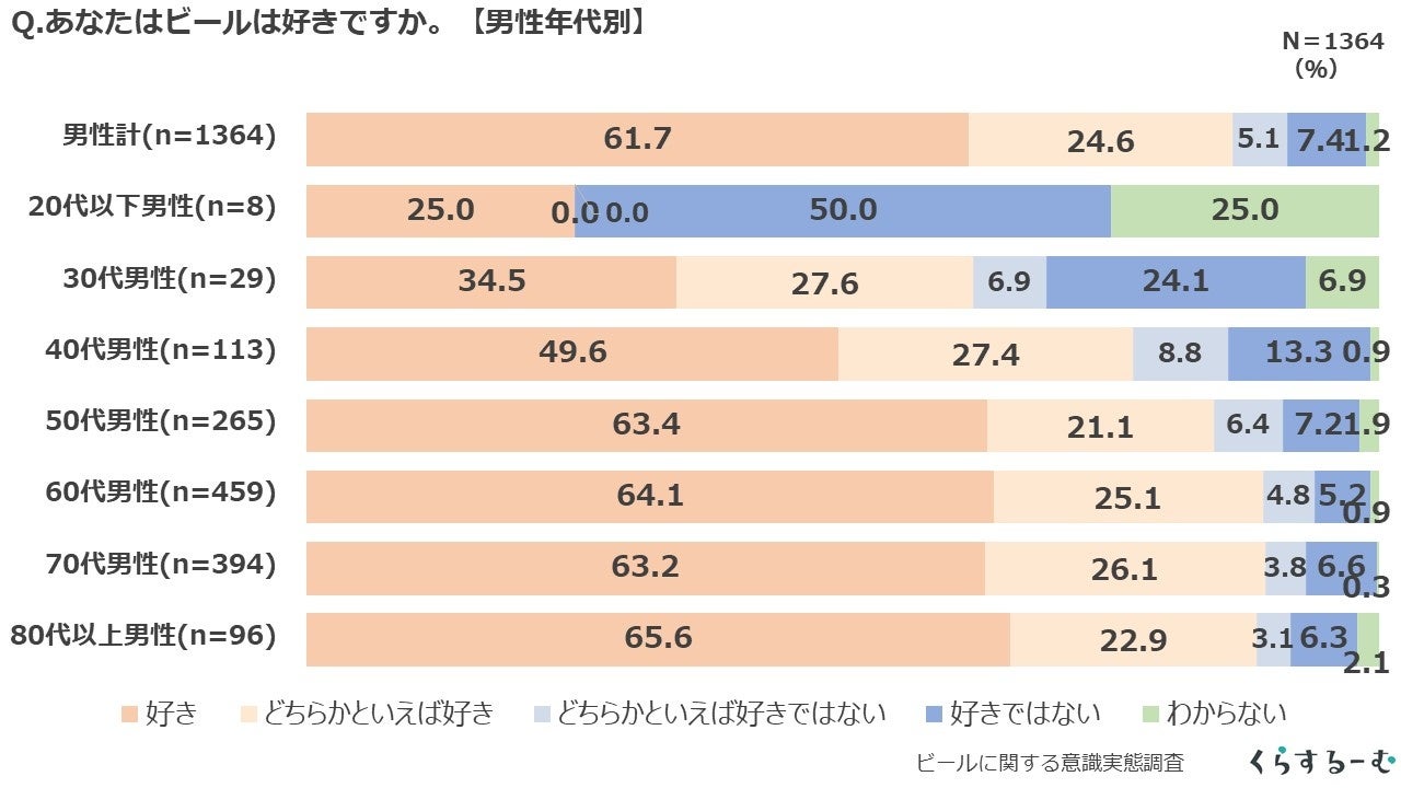 男性は「ビール好き」、年代が下がるにつれて「ビール離れ」傾向