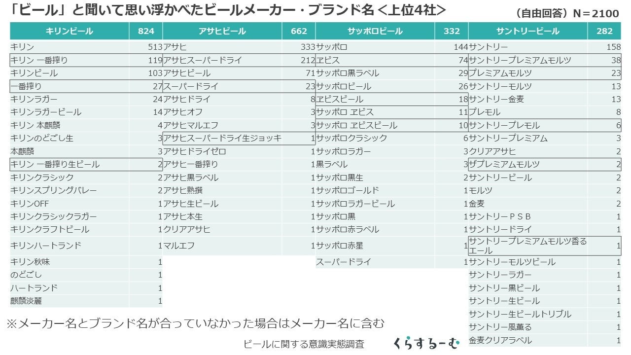 ■ビールと聞いて思い浮かぶメーカー・ブランド:調査結果