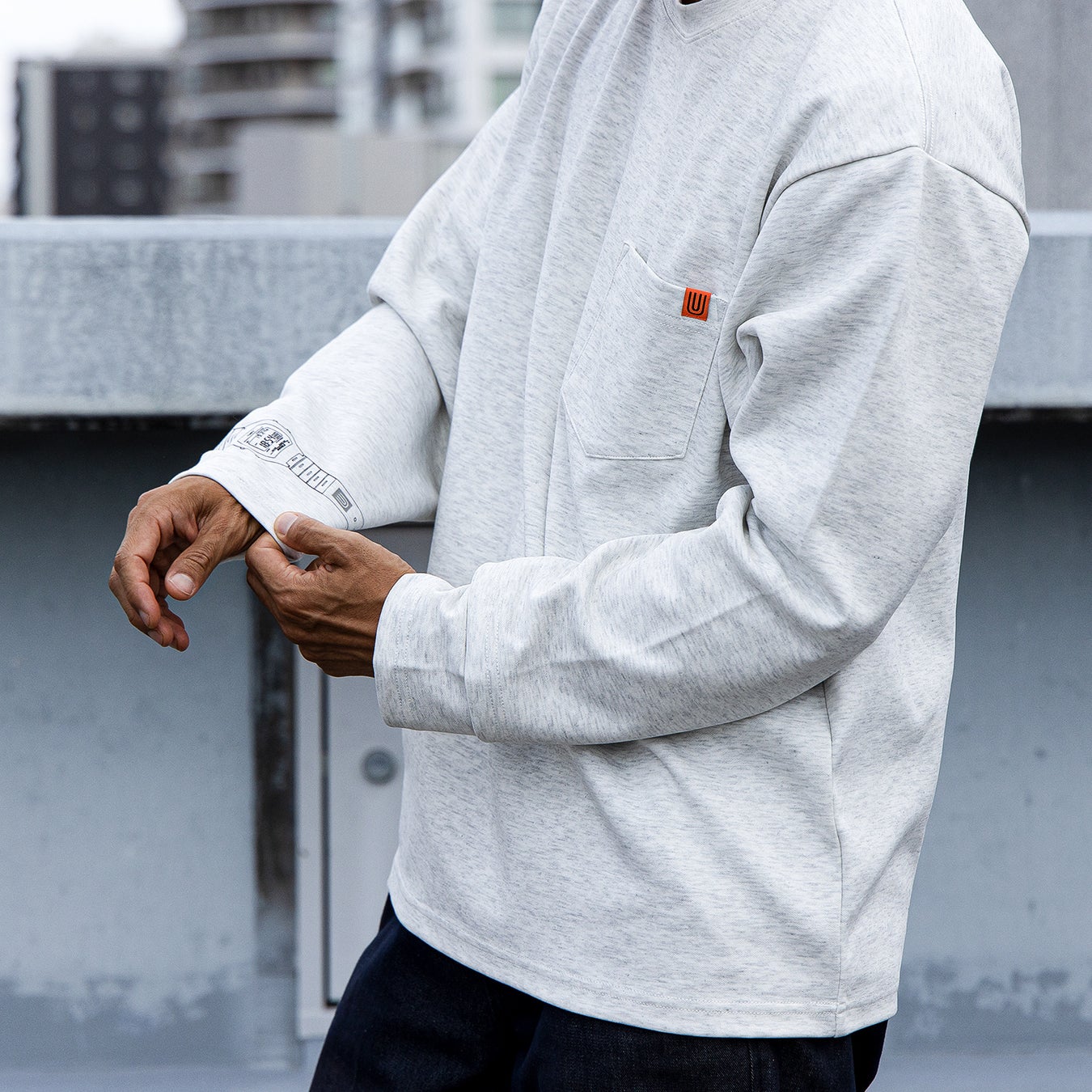 タイメックスとユニバーサルオーバーオールの両社がアニバーサリーイヤーを迎えた今年、こちらはそのコラボレーション第3弾となるスペシャルなロングスリーブポケットTシャツ。ボディはやや肉厚で、フロントの左胸にポケットがあります。