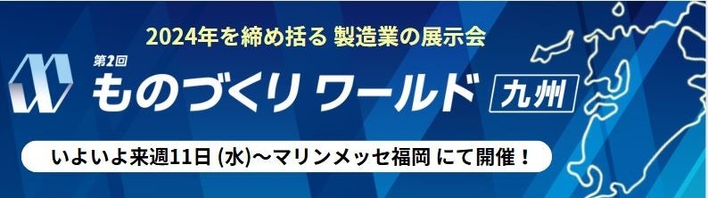 12月11日(水)より3日間、マリンメッセ福岡にて 第2回 ものづくりワールド[九州] を開催します。本日は、製造業・本展の開催を応援する応援メッセージ、さらに地元九州から出展する企業をピックアップしてご紹介いたしますのでご確認いただき、ぜひ当日展示会場にて出展社を取材くださいませ。