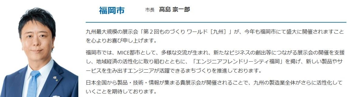 本年の ものづくり ワールド [九州] 開催にあたり