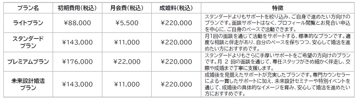 お客様の婚活スタイルやご希望に応じて、4つのプランをご用意しています。