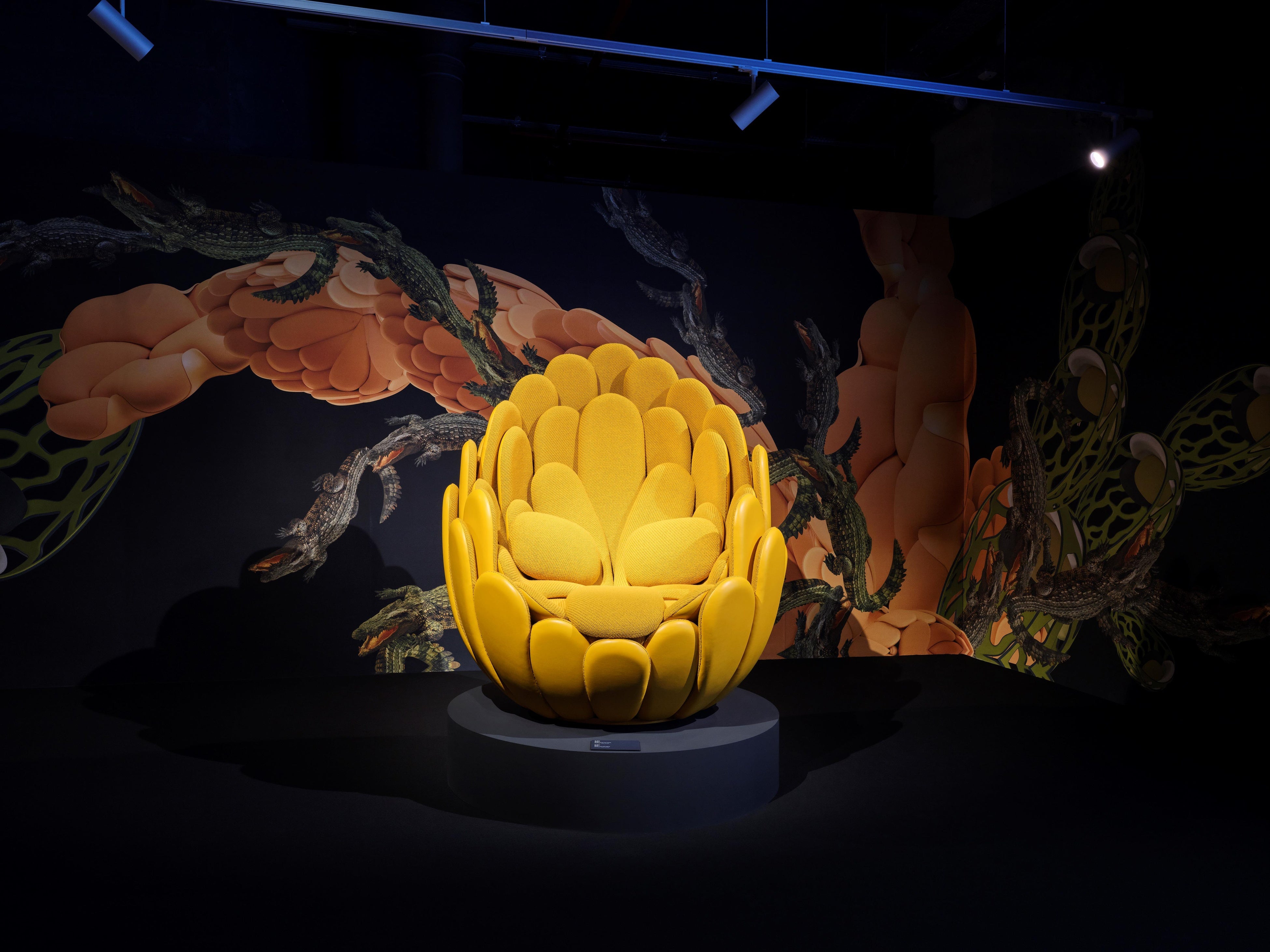エキシビションでは、雲から着想を得たふっくらとしたフォルムが特徴の「Bomboca」(2017年)をはじめ、奇妙でありながら魅惑的なトロピカルフラワー·シェイプのチェア「Bulbo」(2019年)、レザーの花びらが滑らかな渦を巻くチェア「Merengue」 (2022年)、そして2012年にカンパーナ·ブラザーズが「ルイ·ヴィトン オブジェ·ノマドコレクション」のために初めて創作した吊り下げキャビネット「Maracatu」などを展示。ブラジル北東部の民族衣装にインスパイアされたこのノマディックなトラベルキャビネットは、色とりどりのレザーストリップが吊り下げられています。また、本展期間中、1984年にサンパウロでスタジオを設立して以降のフェルナンド & ウンベルト·カンパーナの人生と仕事を追った映画『We The Others』(2024年)も上映。2人は、ブラジルの伝統文化から多大なインスピレーションを得た先見性のあるクリエイティビティにより、デザイン界でその名を知られるようになりました。