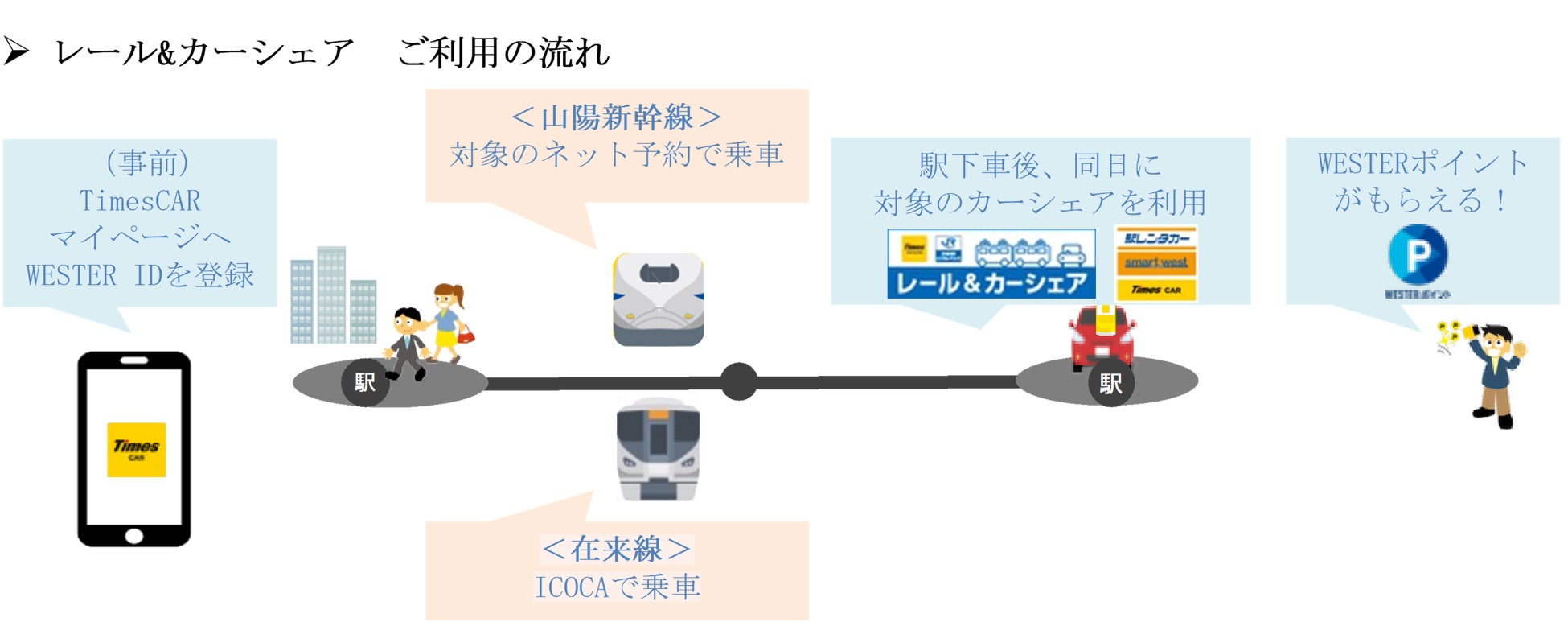 西日本旅客鉄道株式会社(本社:大阪府大阪市、社長:倉坂昇治、以下「JR西日本」)とJR西日本レンタカー&リース株式会社(本社:兵庫県尼崎市、社長:妙泉貴史)およびタイムズモビリティ株式会社(本社:東京都品川区、社長:川上紀文、以下「タイムズモビリティ」)は、2025年7月1日(火)より、WESTERポイントが当たるキャンペーンを実施します。3社は、2013年より「JR西日本レール&カーシェア」の展開を開始し、2023年12月からは「駅レンタカー smart west」の運営においても連携するなど、二次交通の拡充による鉄道の利用促進や移動利便性の向上に取組んでいます。