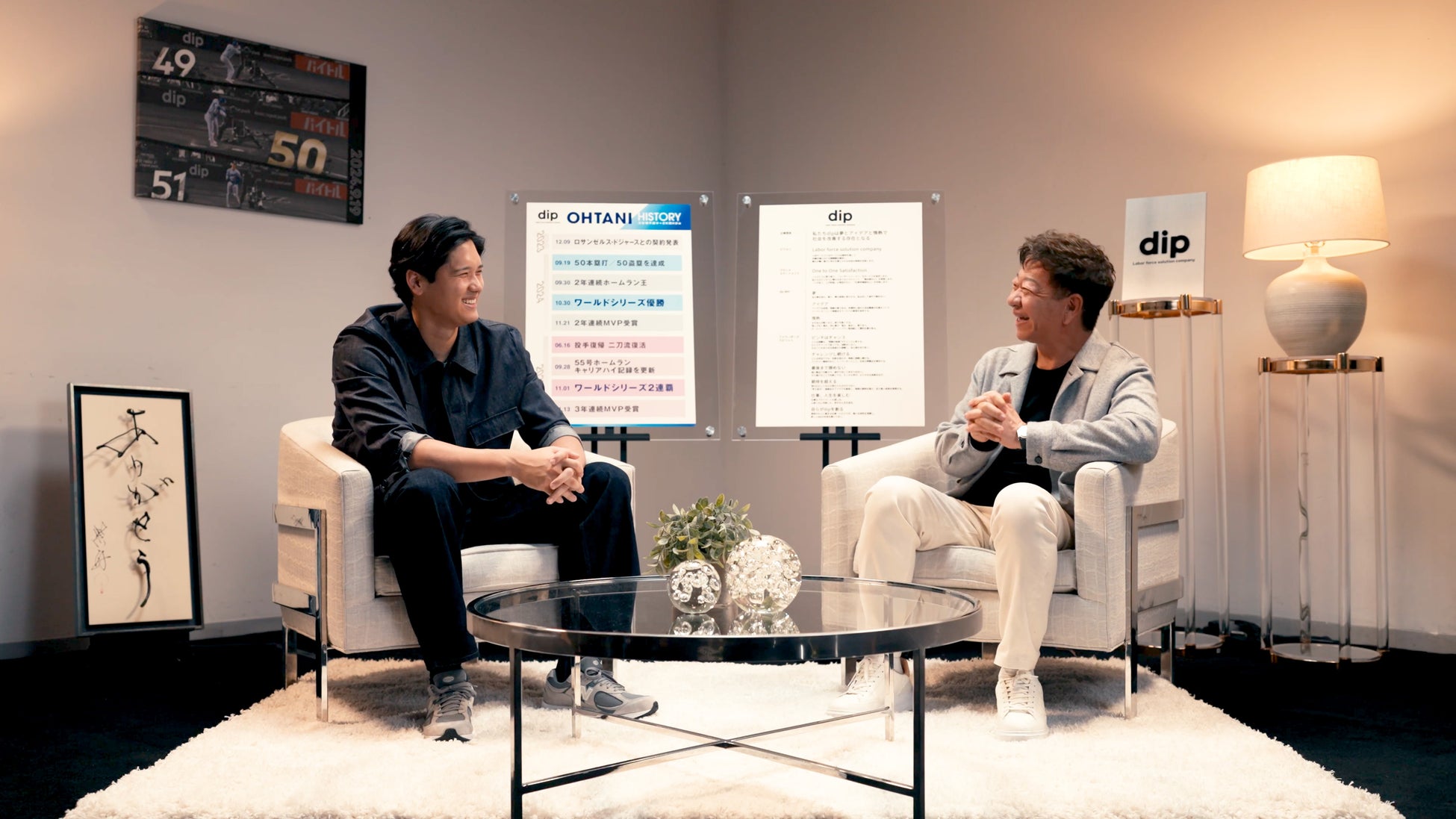 ディップ株式会社(以下「当社」)は、2023年12月よりブランドアンバサダーに就任したメジャーリーガーの大谷翔平選手と当社代表取締役社長 兼 CEO冨田英揮による2年ぶりの特別対談を実施しました。本日公開の動画を第1弾として、特別対談動画を順次配信(※1)いたします。