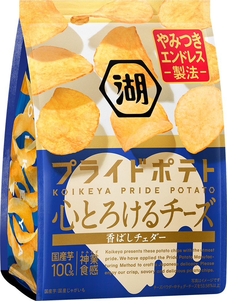 2017年に誕生した「湖池屋プライドポテト」は、創業時代の原点に立ち返り、まるで料理を作るように、素材も製法も一切の妥協なく、老舗・湖池屋のプライドをかけて理想のおいしさを追求した、湖池屋を象徴するブランドです。昨年2月のリニューアルでは、こだわりの独自製法をさらに進化させた“やみつきエンドレス製法”を新たに採用し、コク深い独自のやみつきオイルでの味付けを取り入れることで、これまでにない常習性・やみつき感が加わり、ますます人気が高まっています。