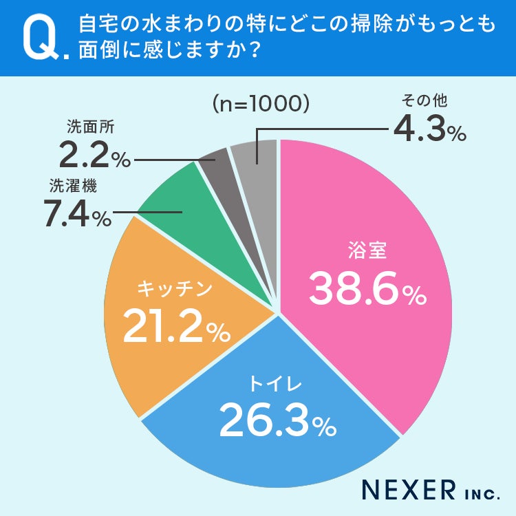【水回りの掃除してますか?】38.6%が、もっとも掃除が面倒なのは「浴室」と回答