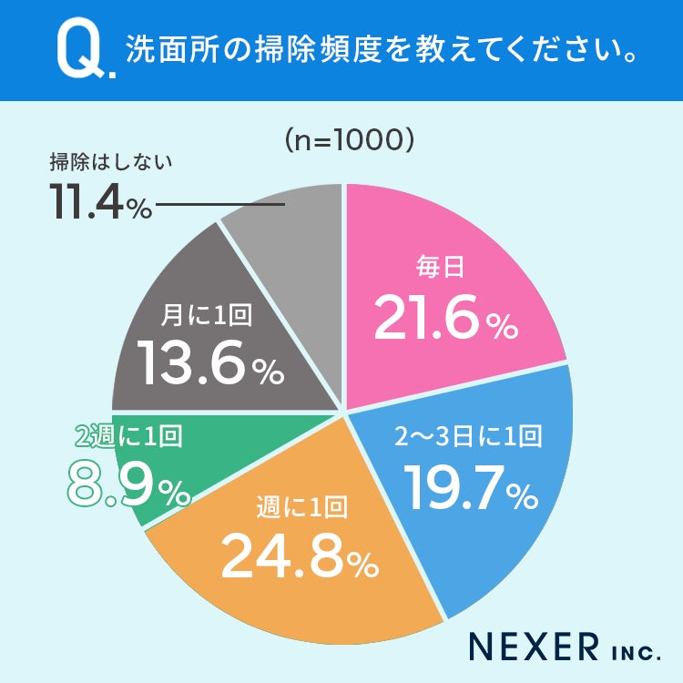 ■洗面所の掃除頻度、24.8%が「週に1回」