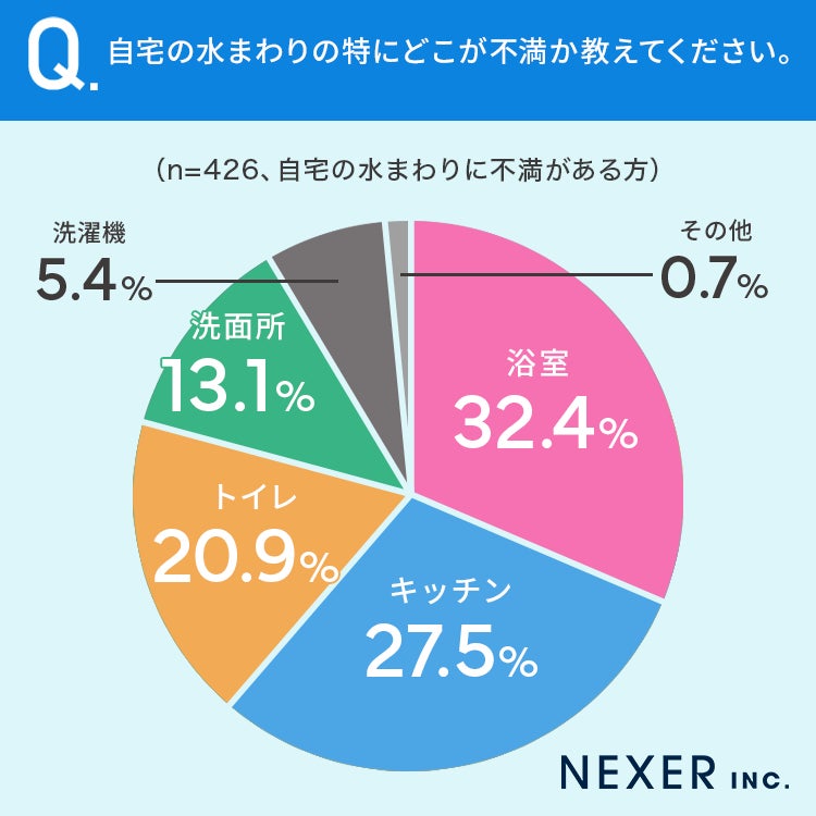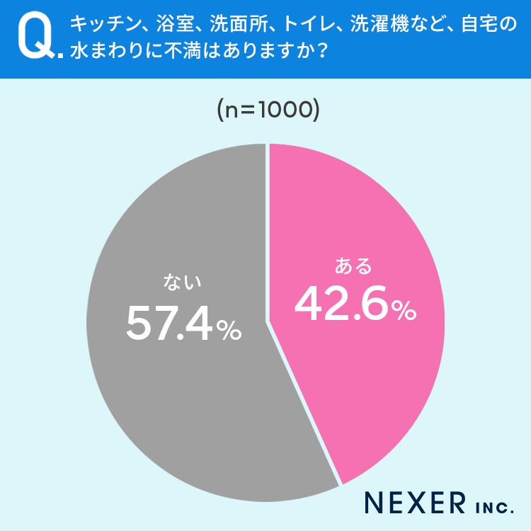 42.6%の方が「自宅の水まわりに不満がある」と回答しています。