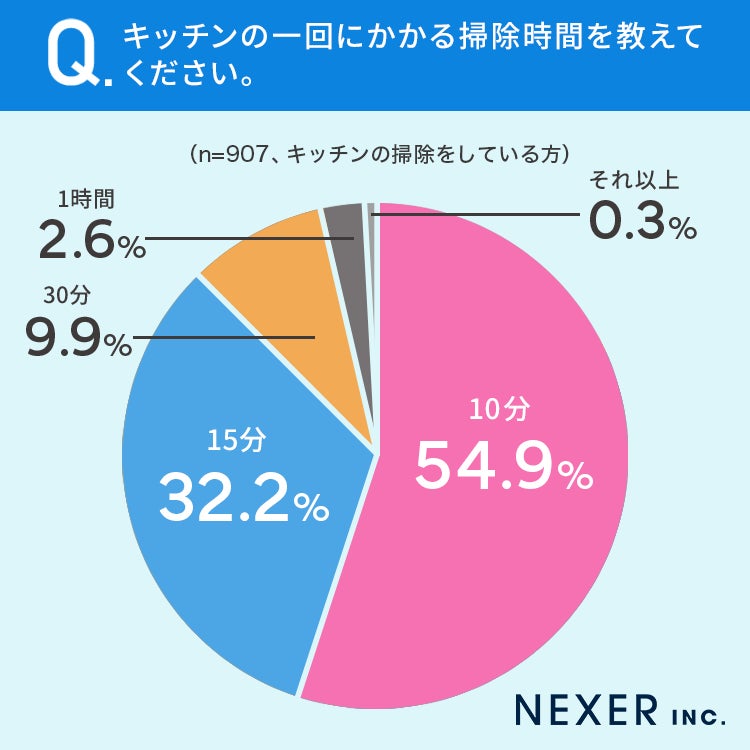 さらに、キッチンの一回にかかる掃除時間を聞いてみました。
