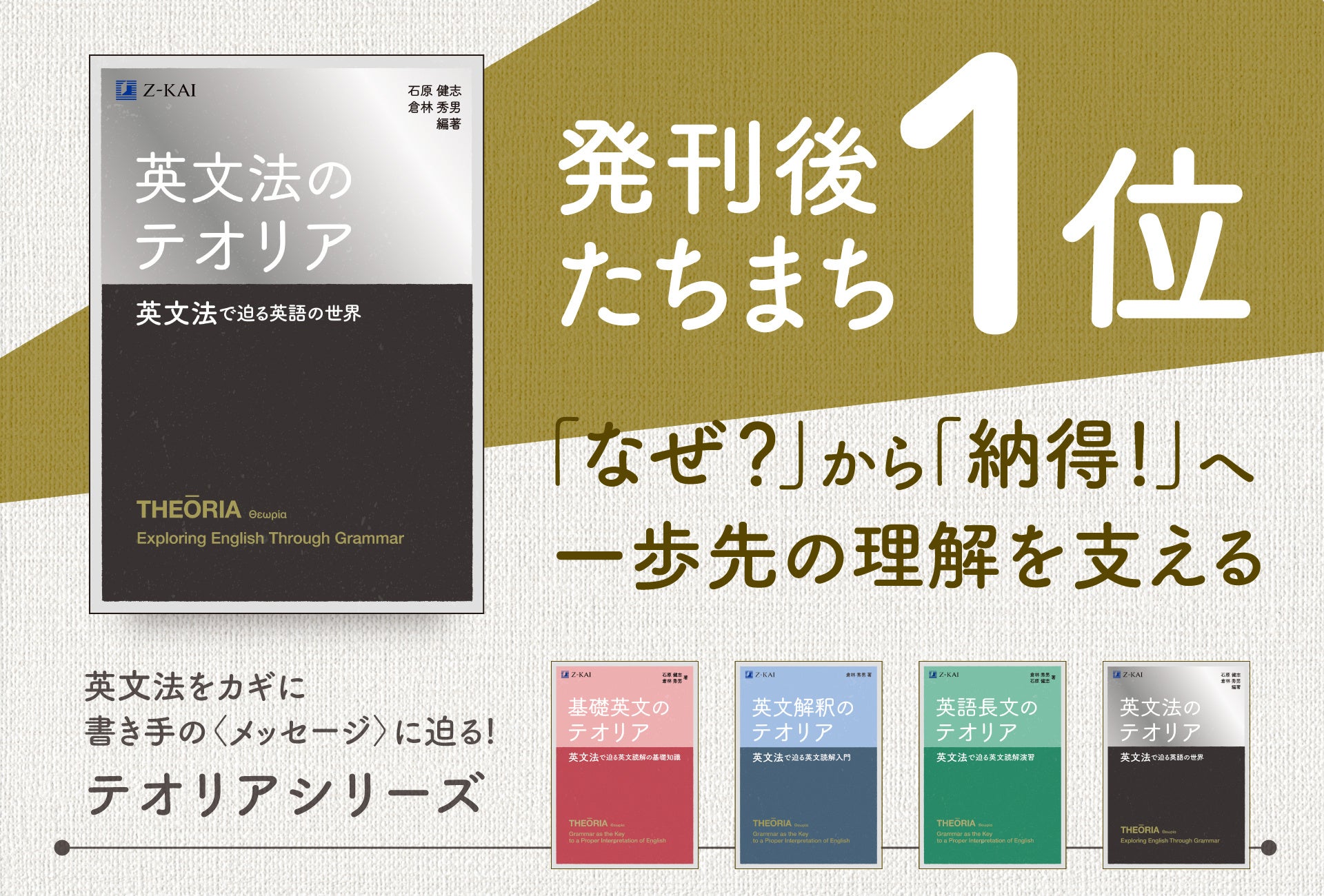 【Z会の本】新刊『英文法のテオリア 英文法で迫る英語の世界』が丸善丸の内本店などで学習参考書部門売上1位を獲得